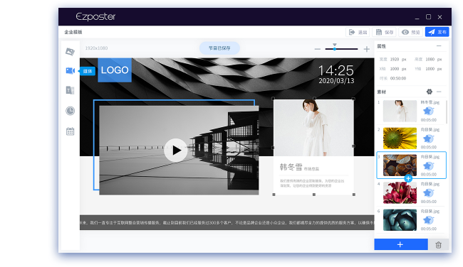 基于局域網(wǎng),是為中小企業(yè)量身定制的輕應(yīng)用信息發(fā)布管理軟件,即裝即用,方便簡(jiǎn)單;高品質(zhì)內(nèi)容,五分鐘制作;區(qū)域設(shè)備,一鍵發(fā)布,省去部署、培訓(xùn)及維護(hù)成本,廣泛適用于小型餐飲、政企、展覽展示、酒店、商場(chǎng)、電影院等場(chǎng)景。
